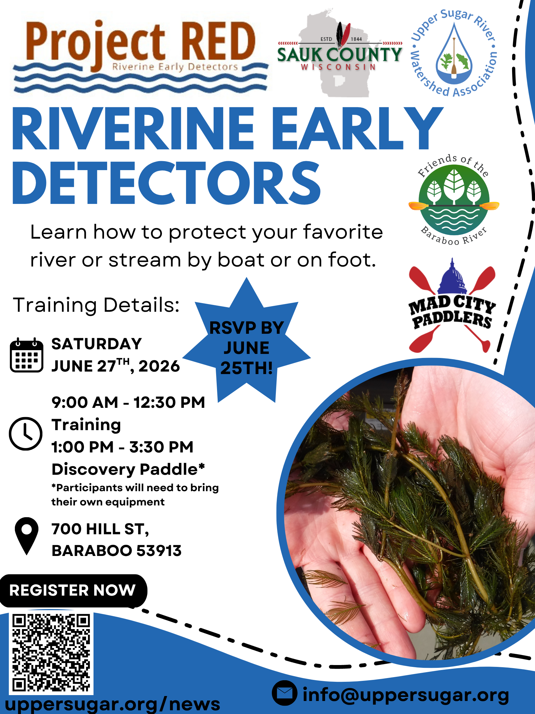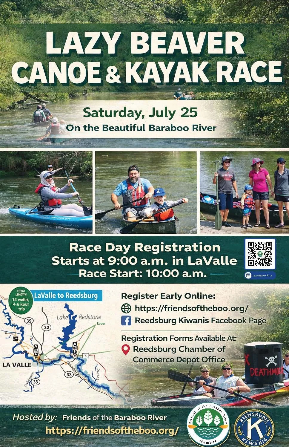Overall, kayaking on the Baraboo River can be a great way to enjoy the natural beauty of central Wisconsin and experience some fun and exciting paddling. However, it's important to be prepared with proper gear, including a life jacket, and to be aware of the river's current conditions before setting out on your trip. You can monitor those conditions by downloading the Friends of the Baraboo River mobile app.