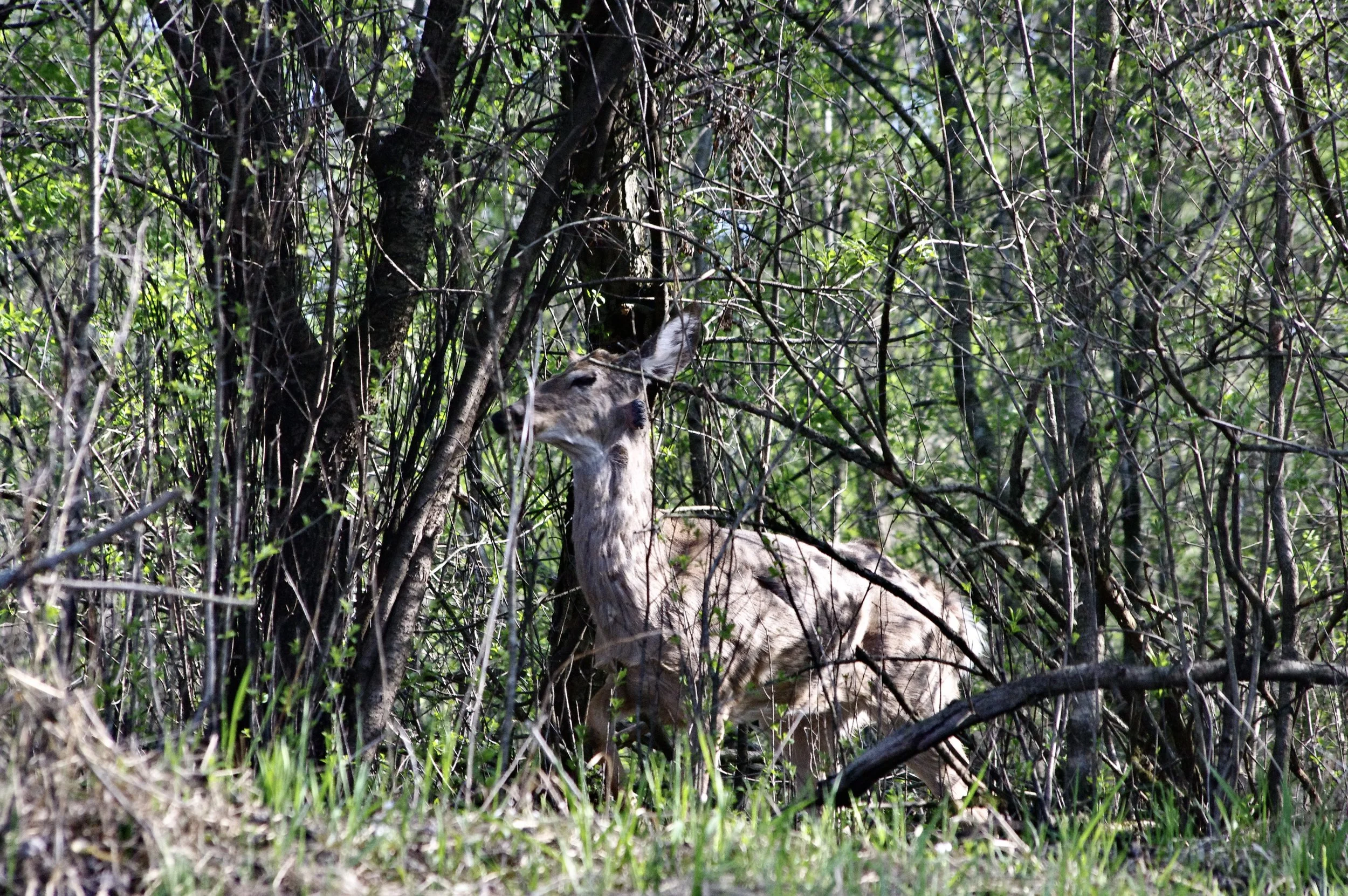 The river was still about a foot higher than normal but I figured it would still give me the opportunity to assess new and old log jams. When the river floods, it is like a game of pick-up sticks. On this particular paddle I found three spots that have been troublesome to navigate the past few years were blown out by recent high water and were now just memories. One jam I had hoped would clear, got worse. A large tree was snapped off at the base last year by high winds. I was hoping the trunk end would be lifted up by the flood, opening a clear pathway so I would not have to navigate through the treetop. The broken trunk end did lift up from the bank, but plunked down into the river by the bank and the whole tree was deeper in the river than before.